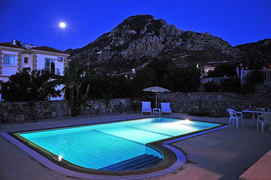 Located in peaceful residential area, at the end of cul de sac outskirts of Karsiyaka, 18 km west of Kyrenia town centre, this beautiful comfortable villa offers a private swimming pool and stunning panoramic mountain and sea views. The villa has 3 bedrooms (2 doubles and 1 twin - sleeping 6 people), one with ensuite facilities, and large open plan living/dining room area. The villa is a perfect choice for a relaxing holiday in North Cyprus.