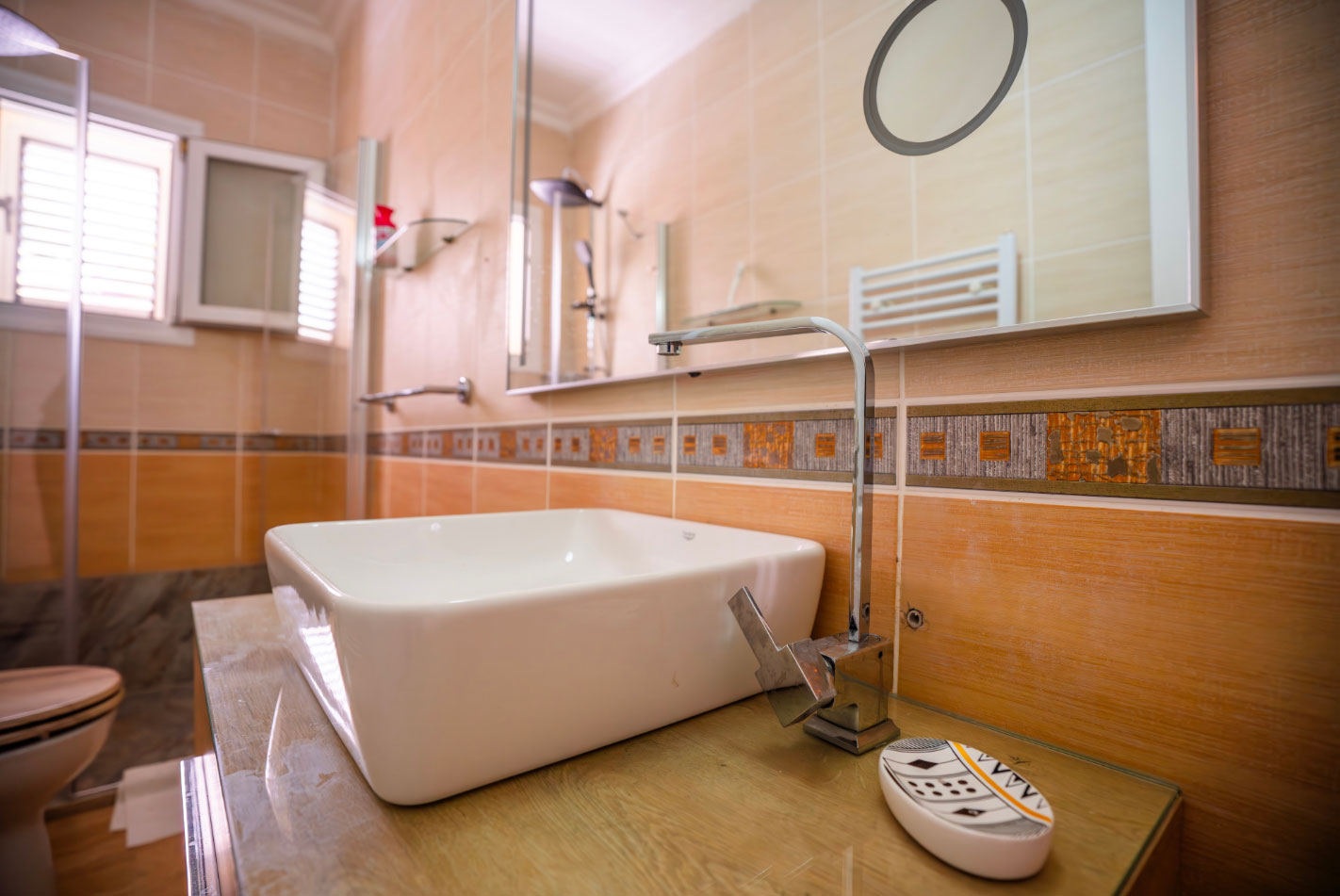 Set high in the mountains above the village of Baspinar, Lapta, Jewel Villa is a 4-bedroom lovely holiday villa offering spectacular panoramic views of the cost and surrounding village. The location is a drive up the mountain on a peaceful country lane. The villa offers 4 bathrooms with 3 en-suite, a swimming pool and a great outdoor area with covered terrace.