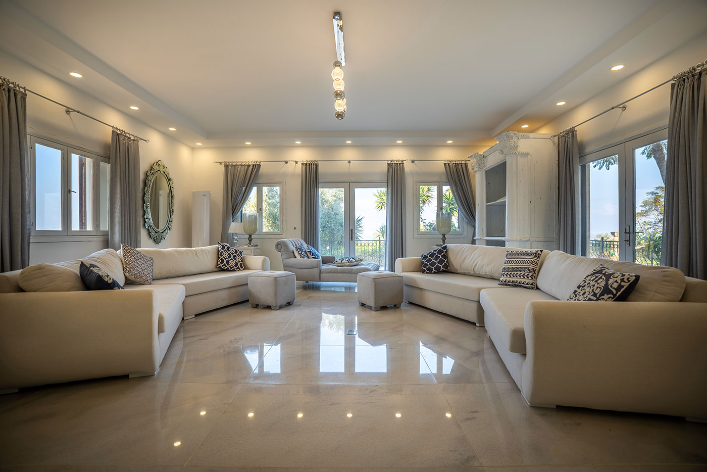 The villa boasts a generous living area designed for both relaxation and socialising, along with multiple bedrooms ideal for unwinding in total comfort.
